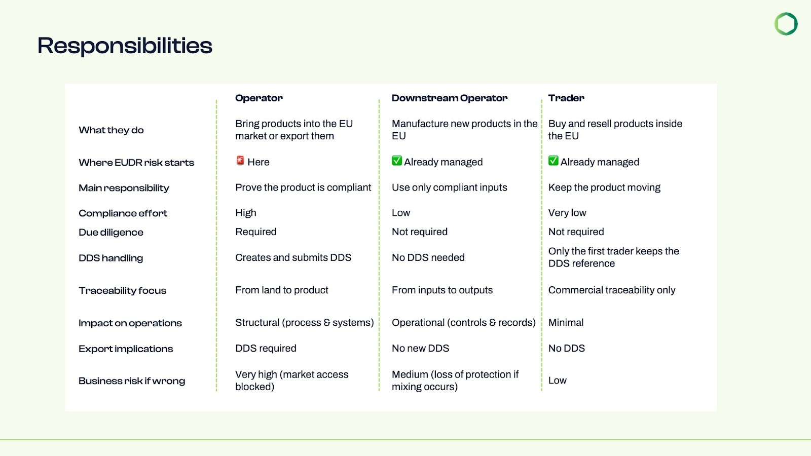 However, and this is where implementation matters, companies must still ensure that the material they process is fully covered by a valid DDS or simplified declaration.
